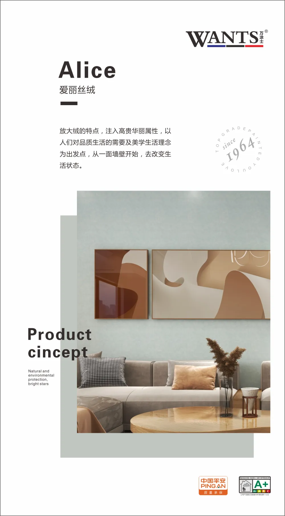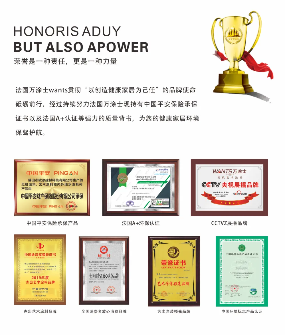 作为涂料人,深知这是一份责任!诚信是一家企业的名片,质量为先是诚信发展的基础,WANTS万涂士艺术涂料永远把质量作为企业发展的生命线,在发展过程中,一直坚守“以创造健康家居为己任”的品牌使命!