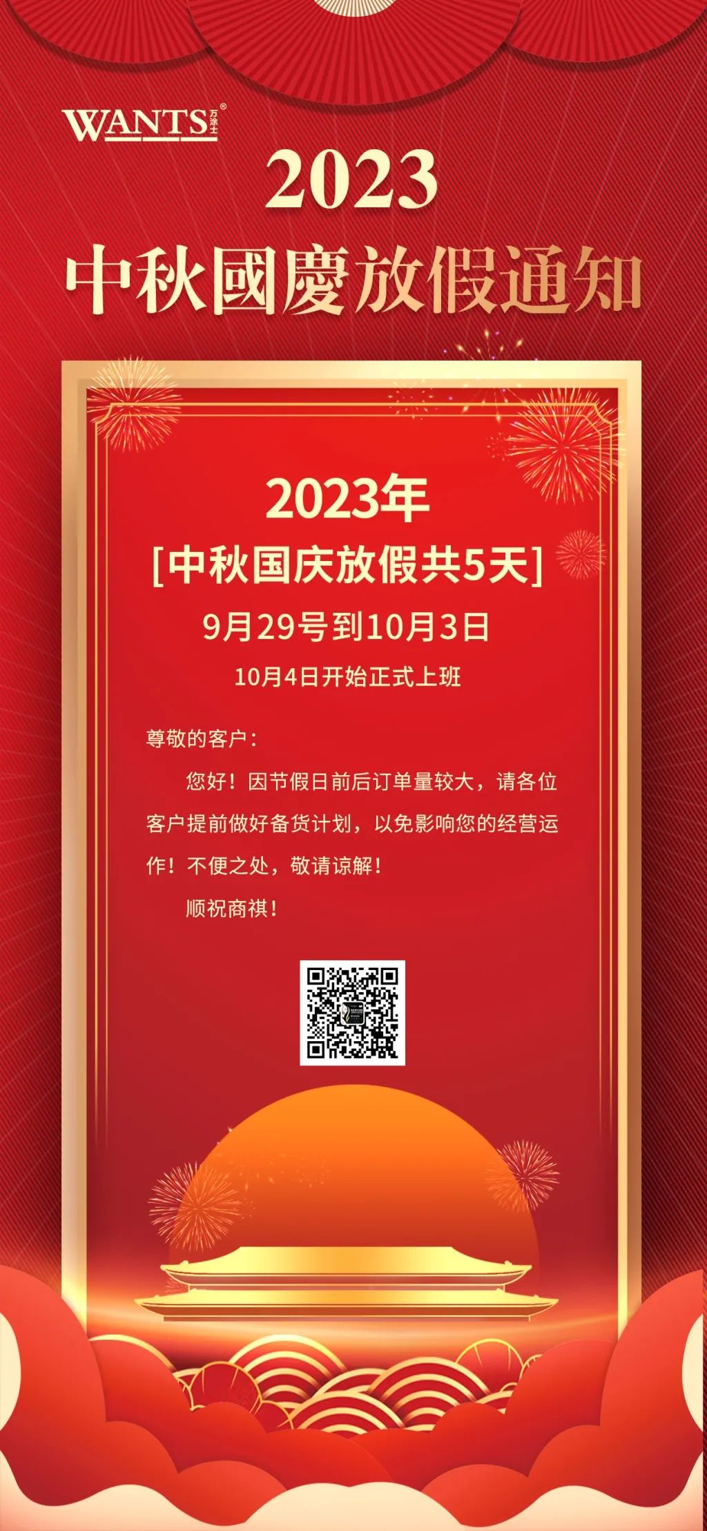万涂士祝您及家人中秋国庆双节快乐,阖家团圆!